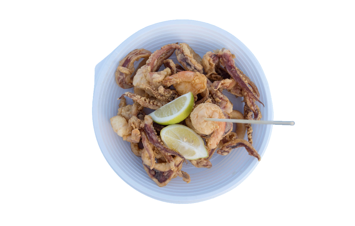 Paper cone Fish Fry Fischpfanne (garnelen, tintenfisch)